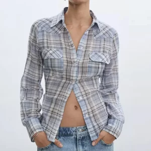 Autumn Daily Shirt Style Casual Women’s Checkered Long Sleeves Buttoned Fit Cotton Blouse