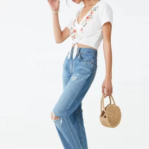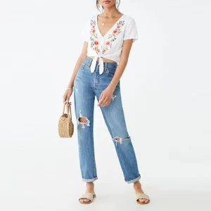 Best Selling Women’s Summer Tops V-Neck Breathable Casual Floral Embroidered Short Sleeve Blouse