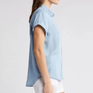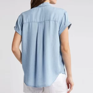 Camp Tops Lady Summer Spread Collar Short Sleeve Chest Patch Pocket Lightweight Shirt Casual Women’s Blouse