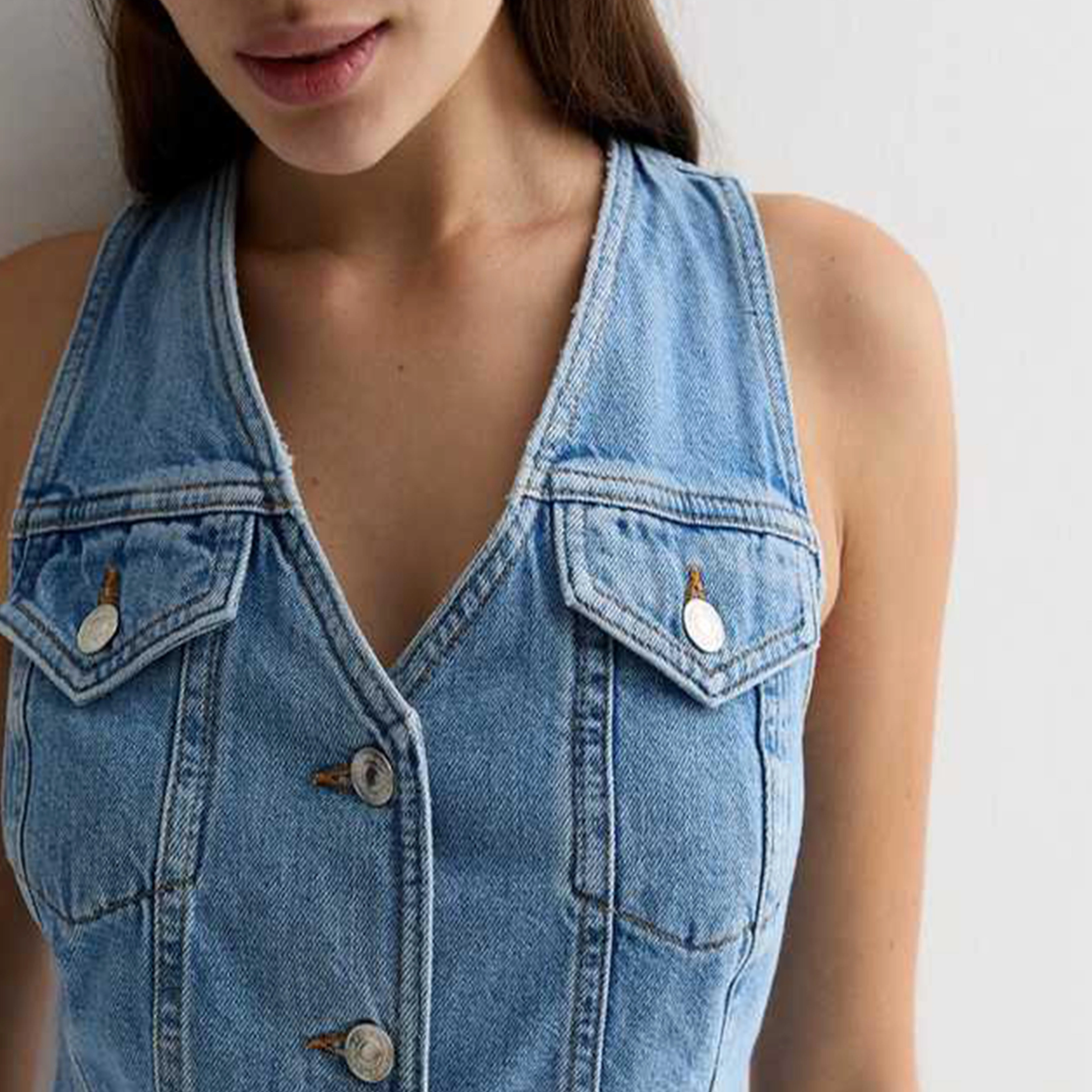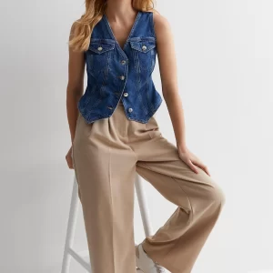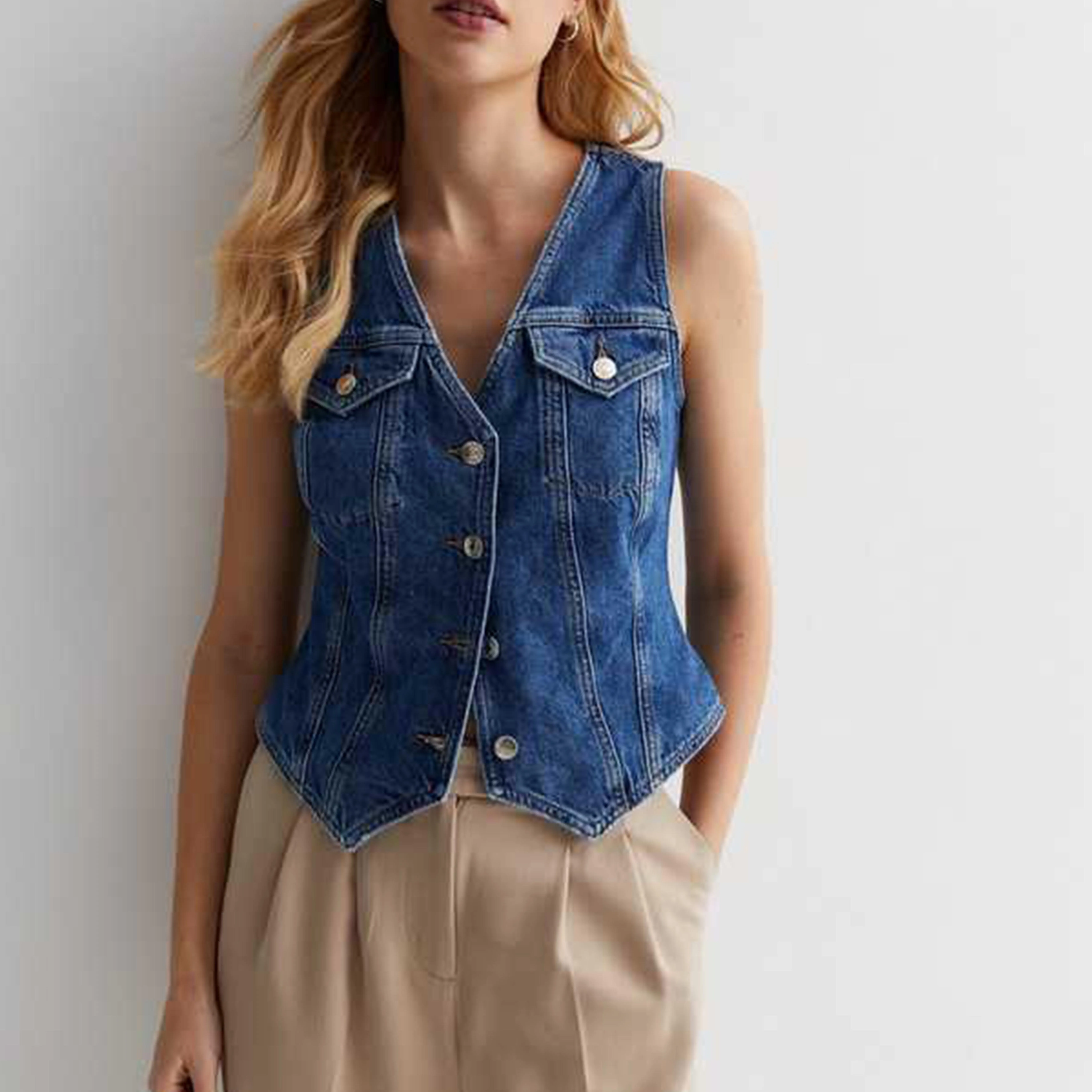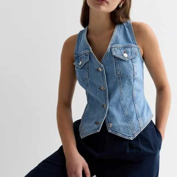 Chic Casual Lady Button-up Sleeveless Vest Denim Waistcoat