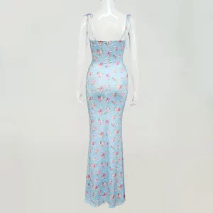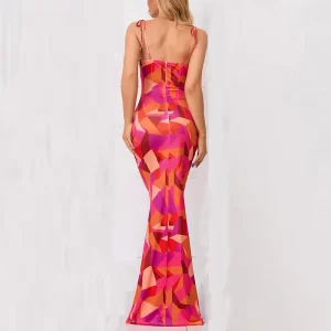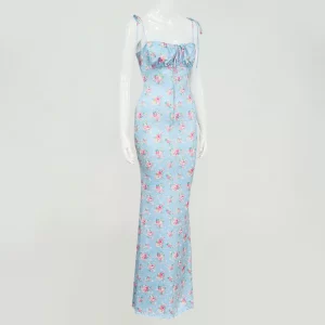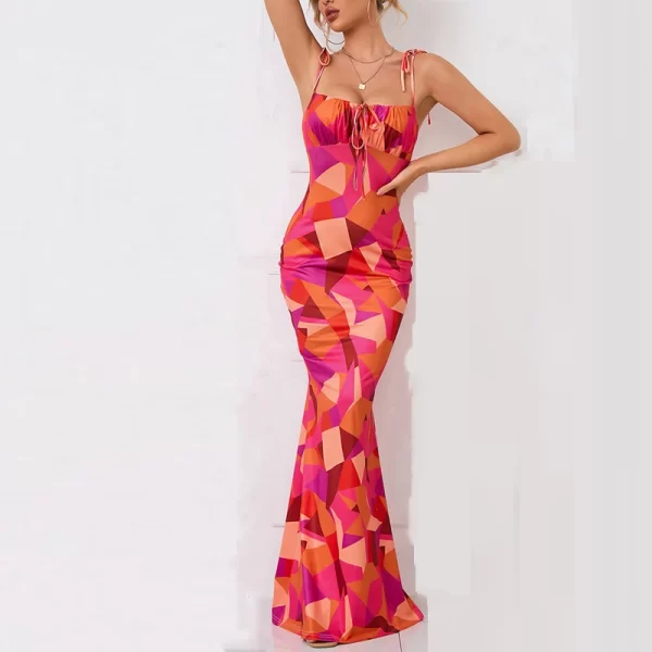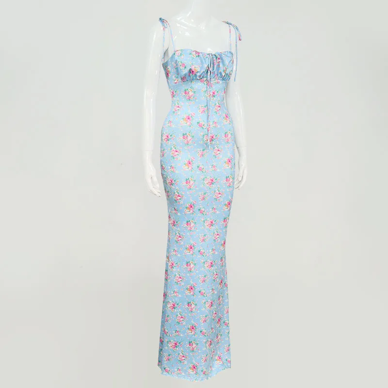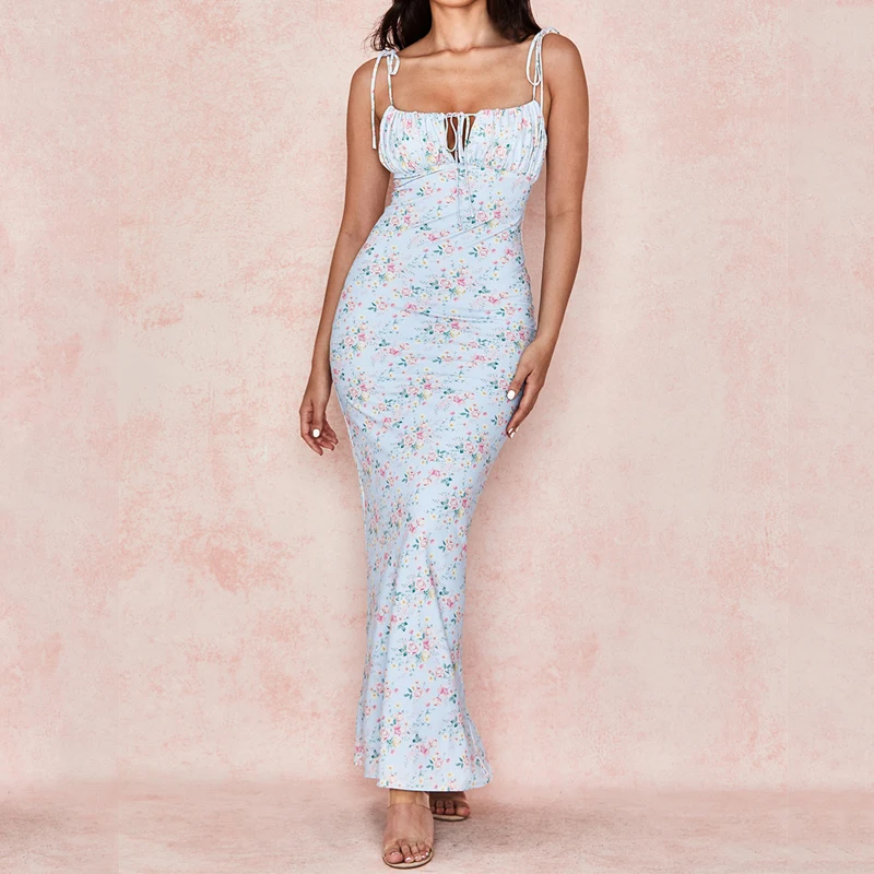 2024 Popular Sleeveless Digital Print Sexy Summer Elegant Women Party Bodycon Shirred Maxi Dress