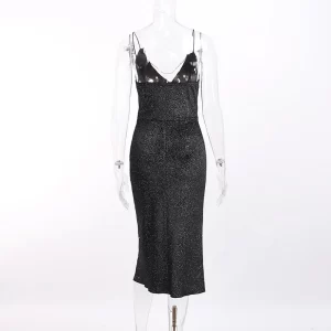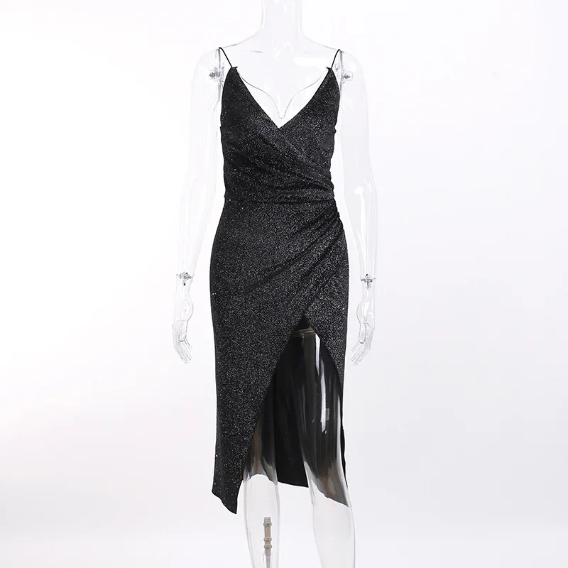 2024 Stylish Sleeveless High Slit V-neck Clothing Women Casual Club Party Elegant Sexy Night Dresses