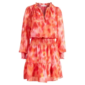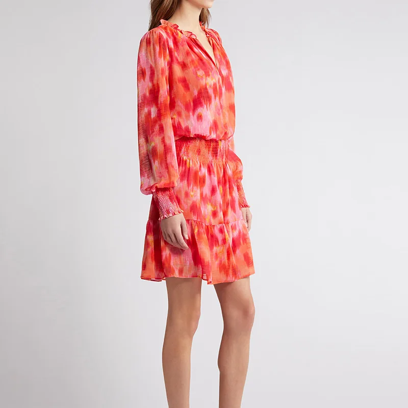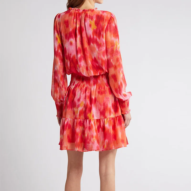 Autumn Style Long Sleeve lined Mini Dress with Mixed Floral Print Tiered Chiffon Fit Women’s Dresses