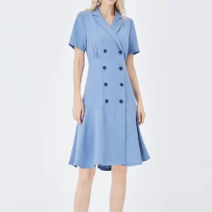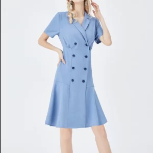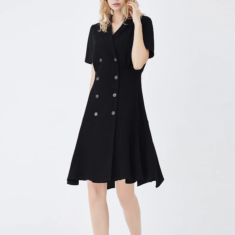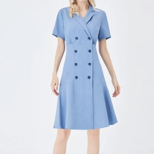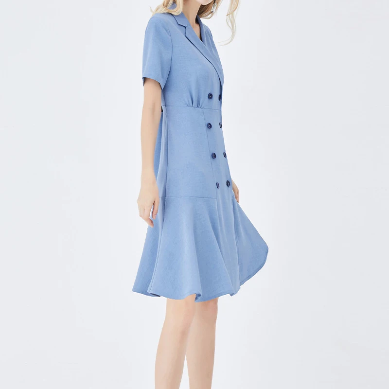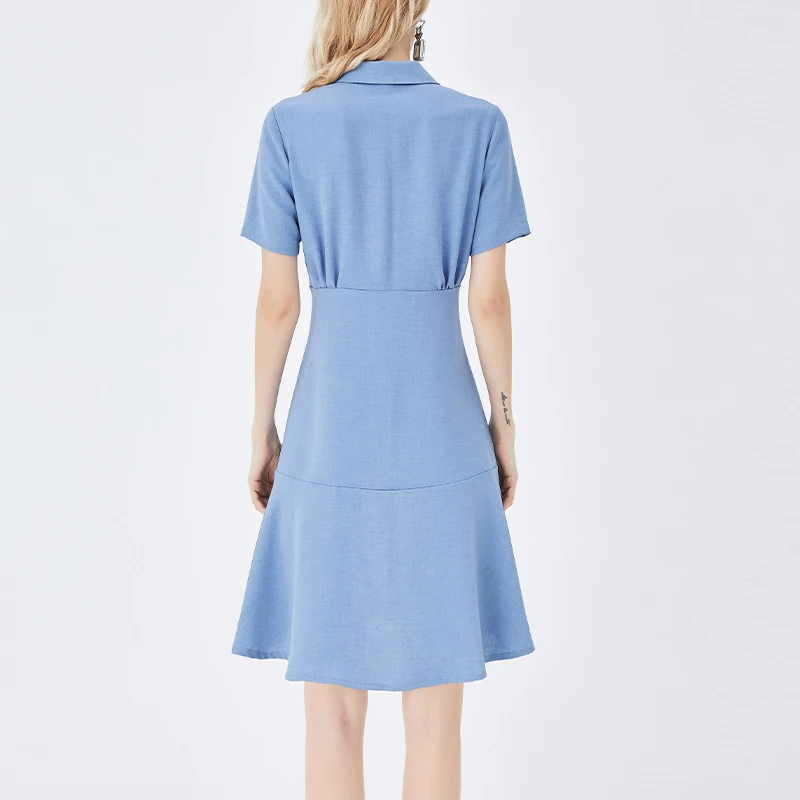 Clothes Button Up V-neck Short Sleeve Casual Ladies Shirt Women Formal Office Work Dresses
