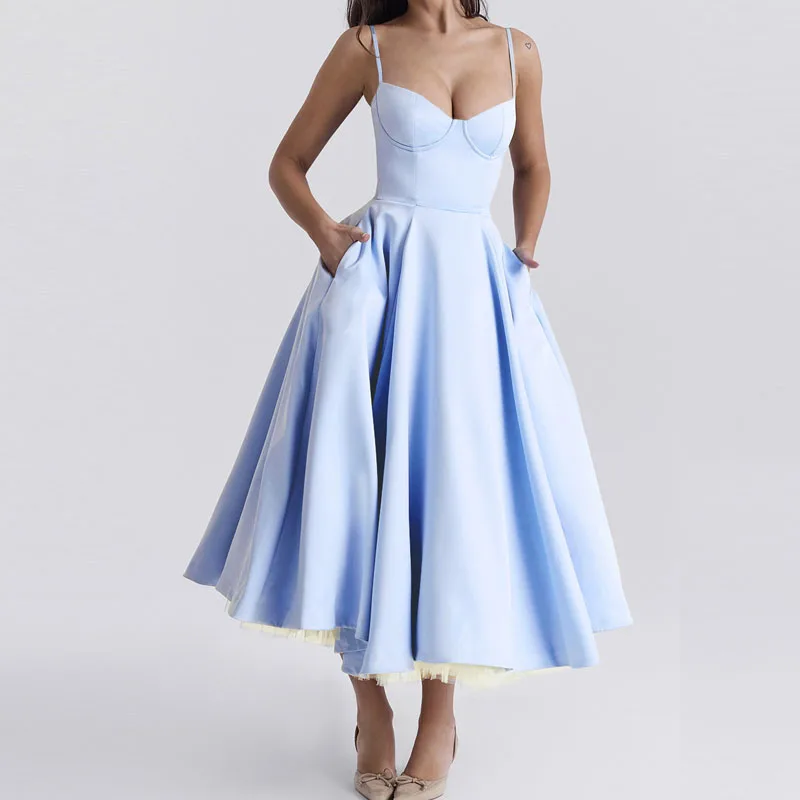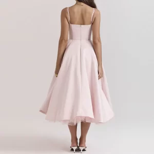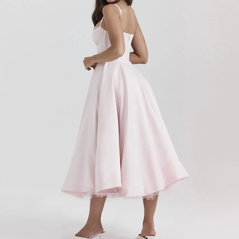 Clothing Solid Color Slip Women Casual Summer Elegant Sexy Pink Long Dresses