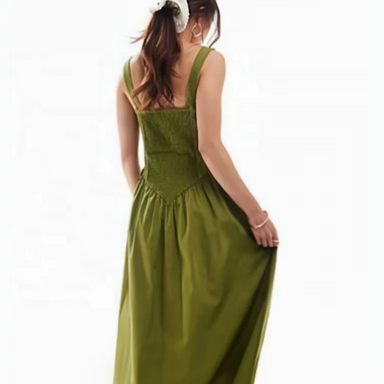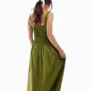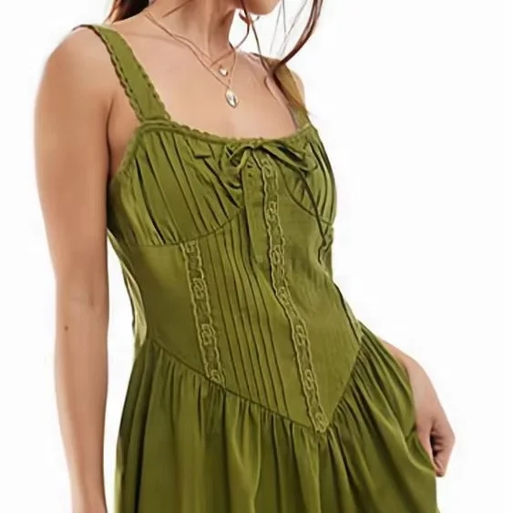 Corset Bodice Square Neck Maxi Vacation Sundress with Lace Trims
