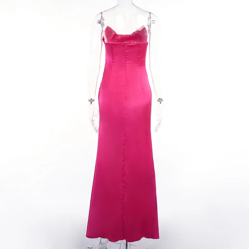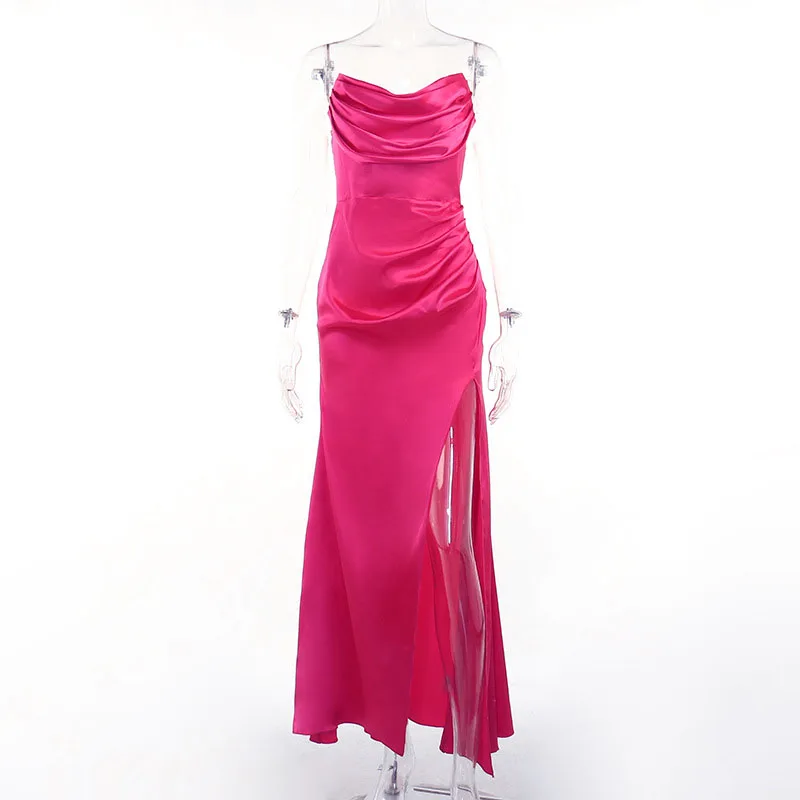 Designer Sleeveless Pure Color High Slit Fashion Women Sexy Party Elegant Lady Casual Formal Stain Dresses