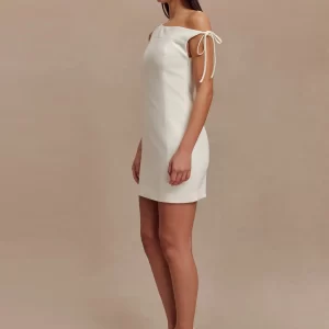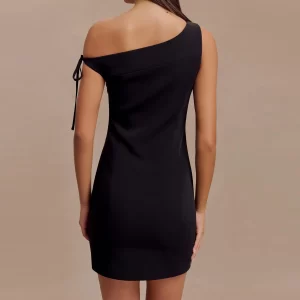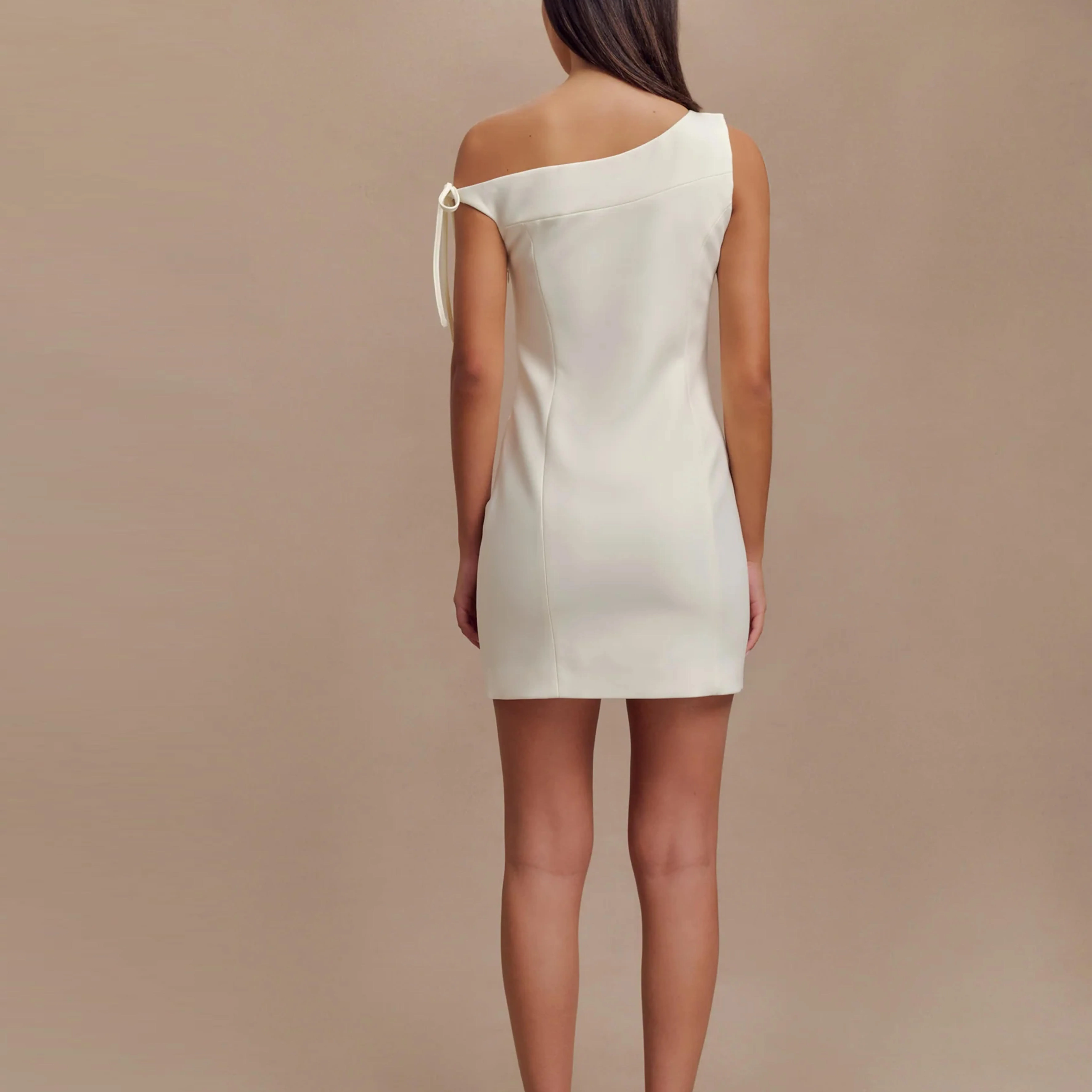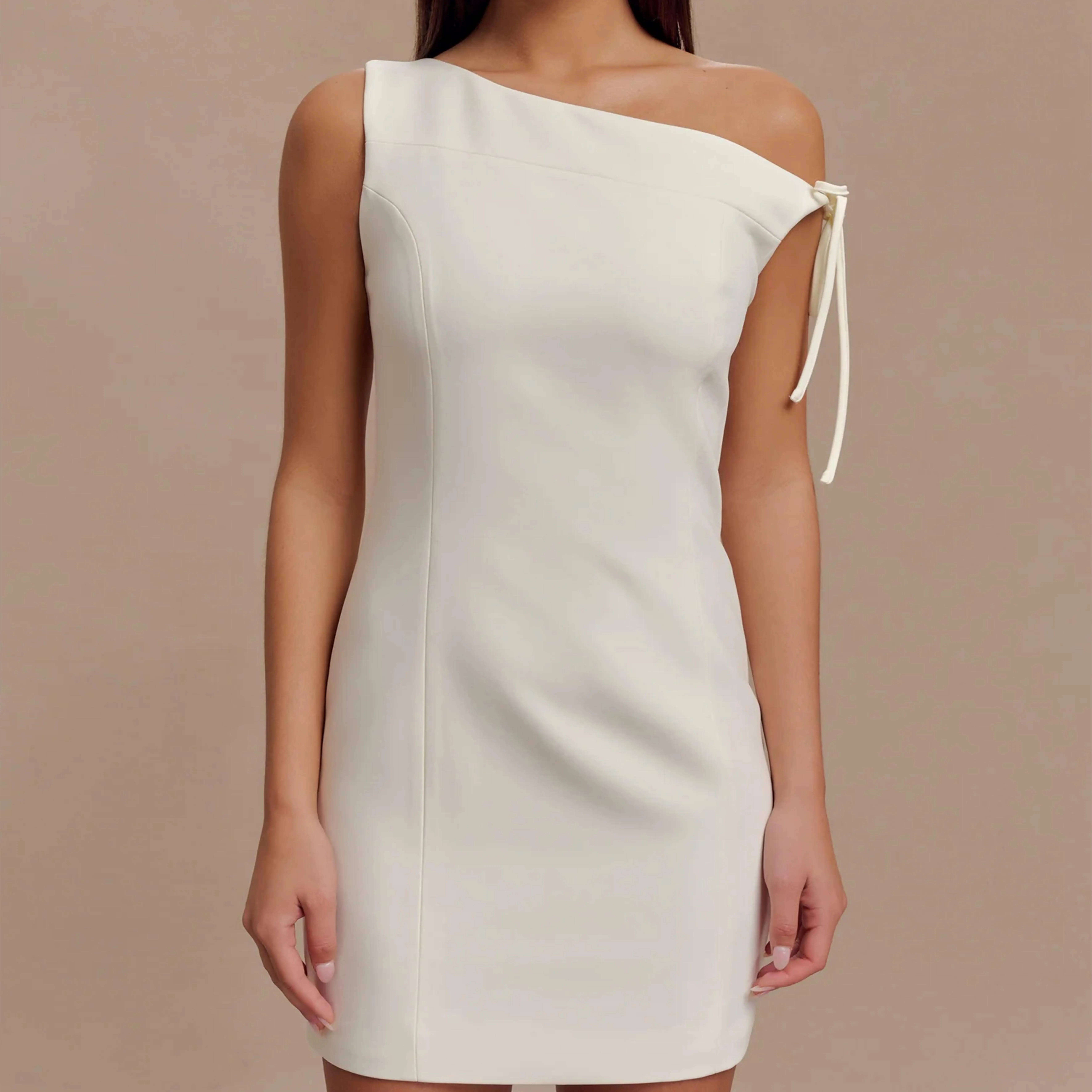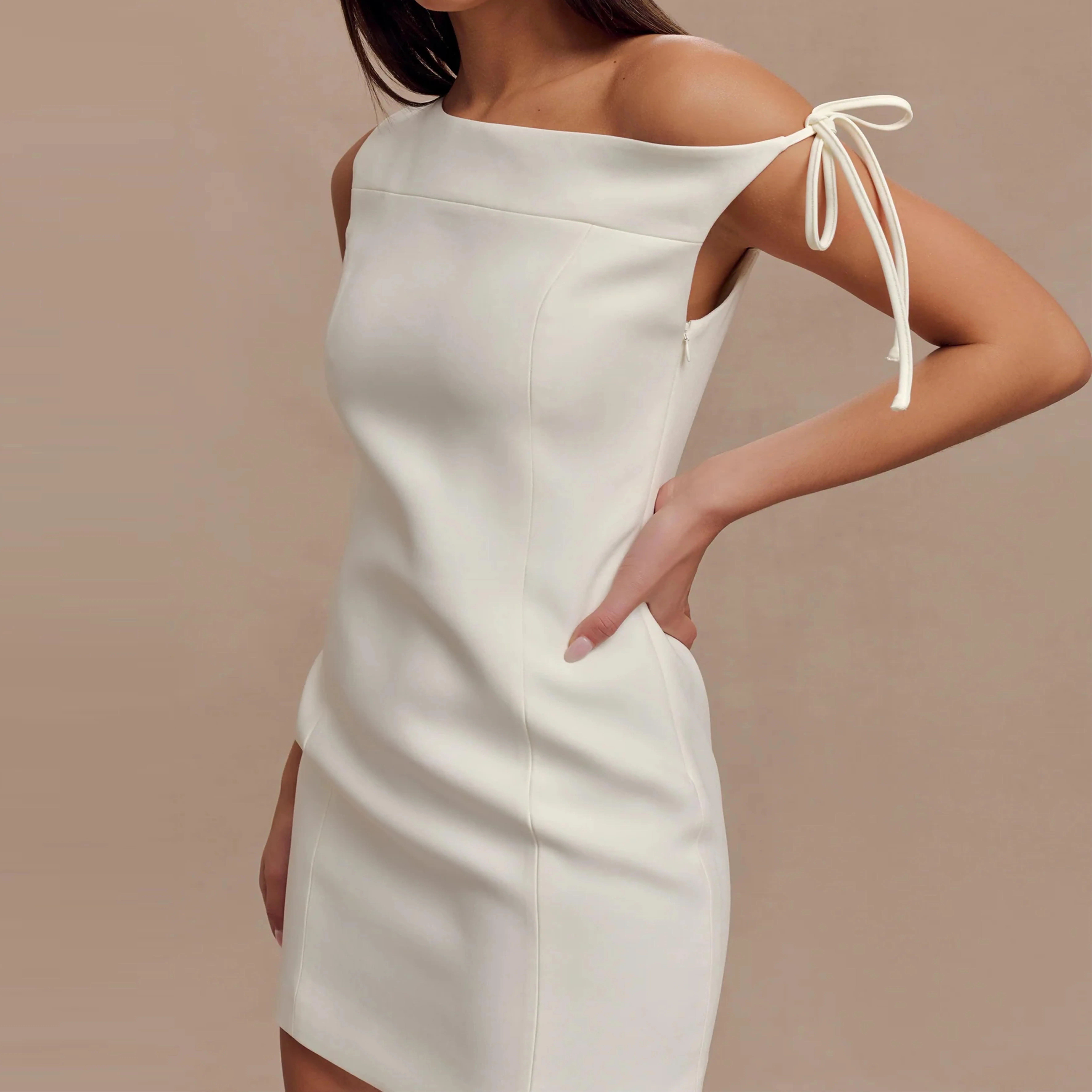 Elegant Solid Casual Daily Suiting Off Shoulder Slash-neck Asymmetrical Mini Dress