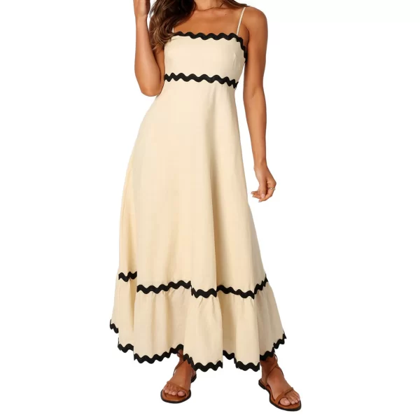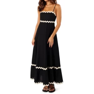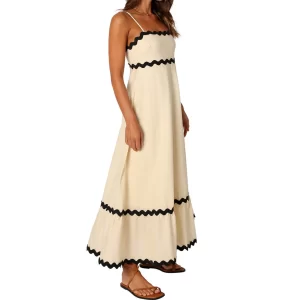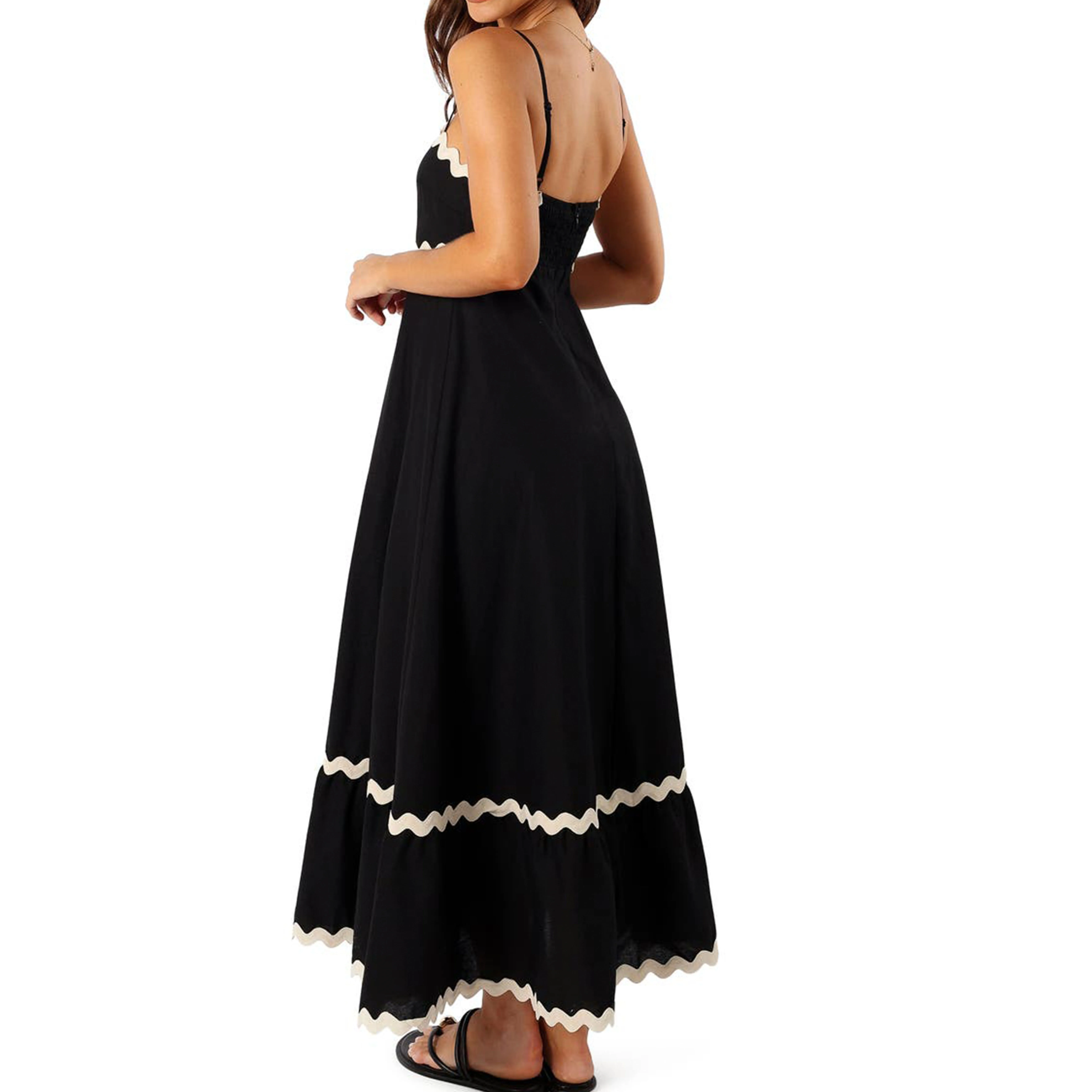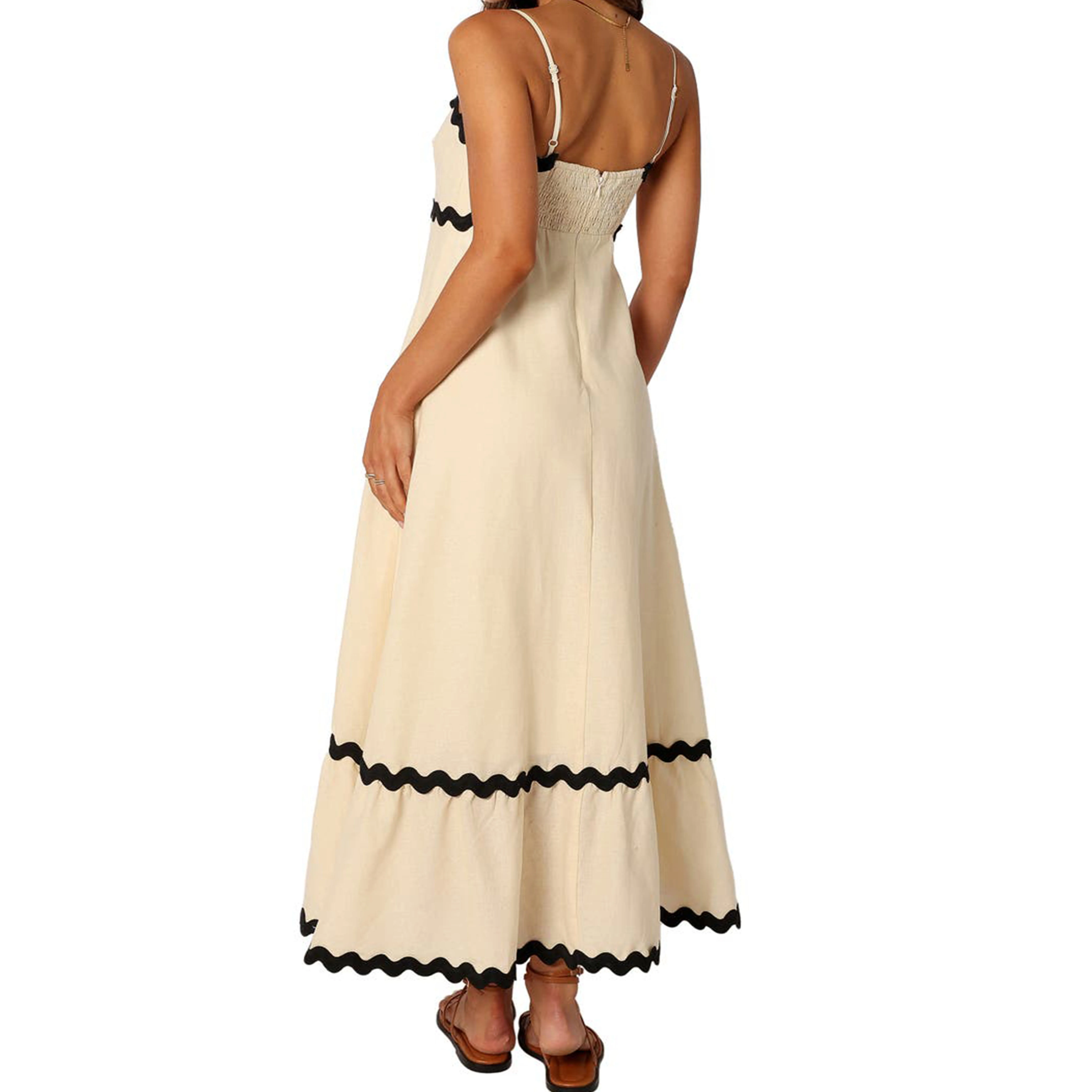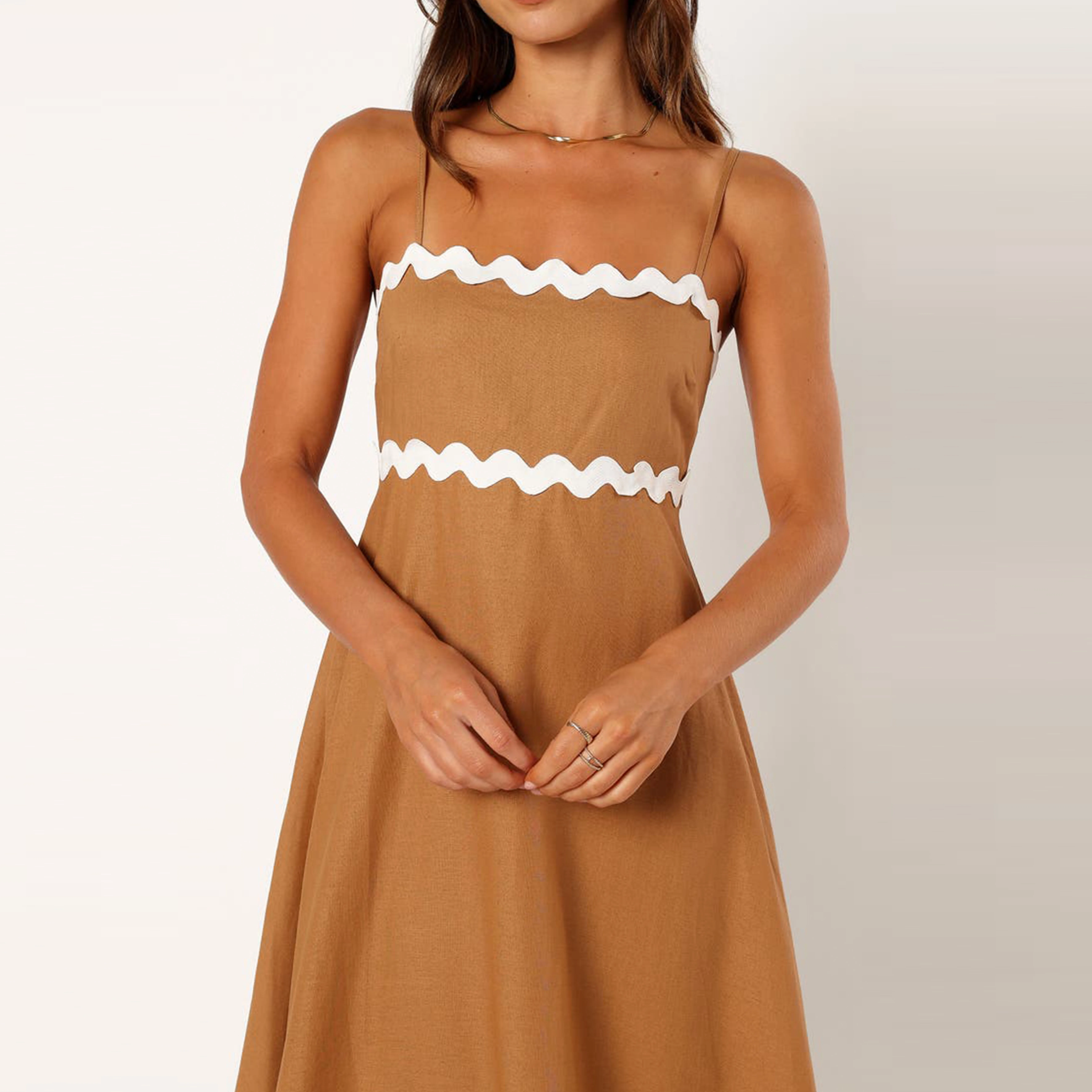 Elegant Women’s A-Line Spaghetti Strap Dress with Wave Trim