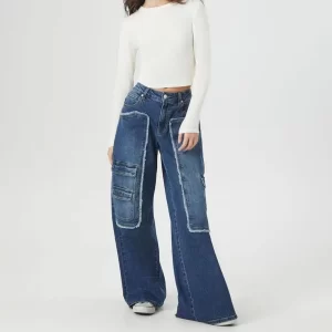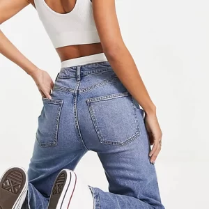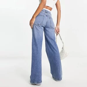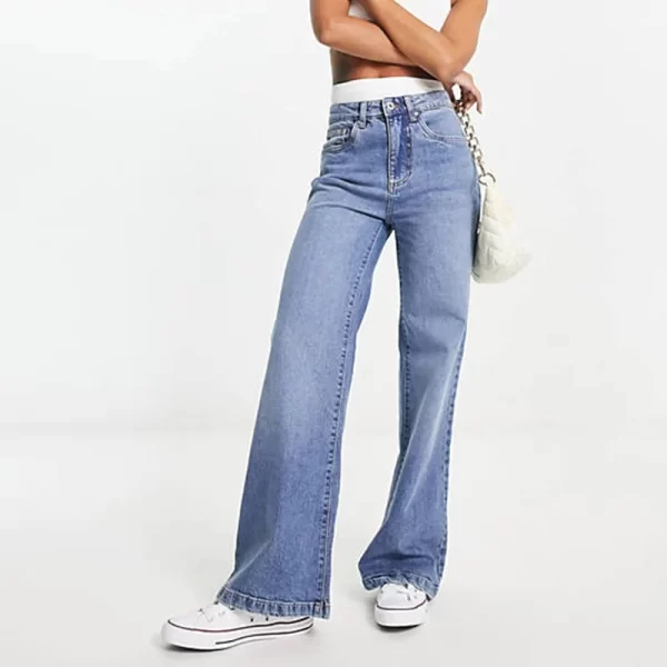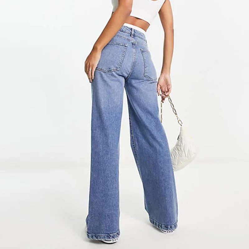 New Fashion Women’s Stretch Wide Leg High Waist Blue Jeans