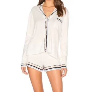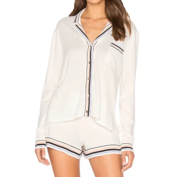 New Arrival Cotton Women’s Pajamas Contrast Ribbed Trim Shorts Summer Plus Size Plain Dyed Pajamas
