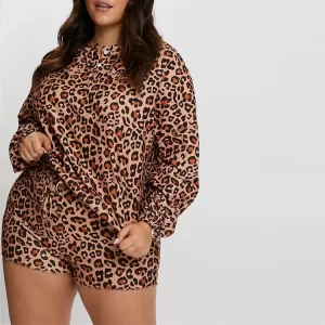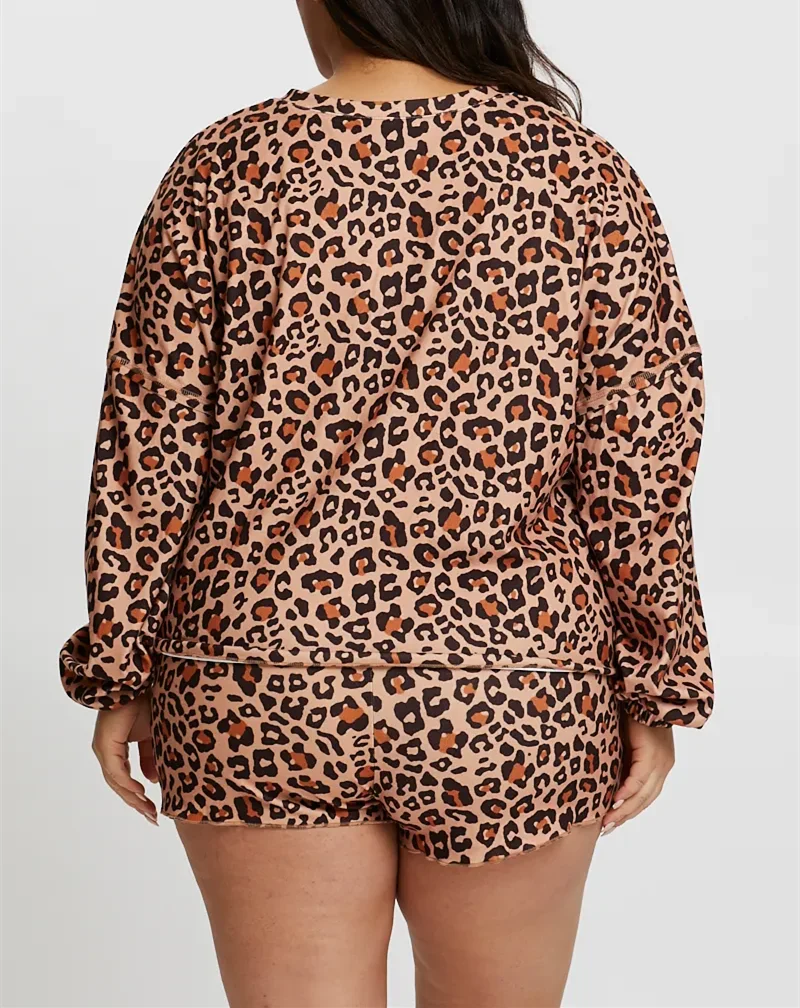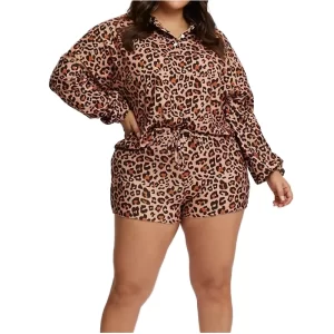 Plus Size Women’s Animal Printing Curve Lounge Wear Set Elastic Waist with Shorts Length Pajamas
