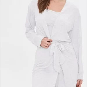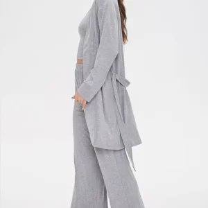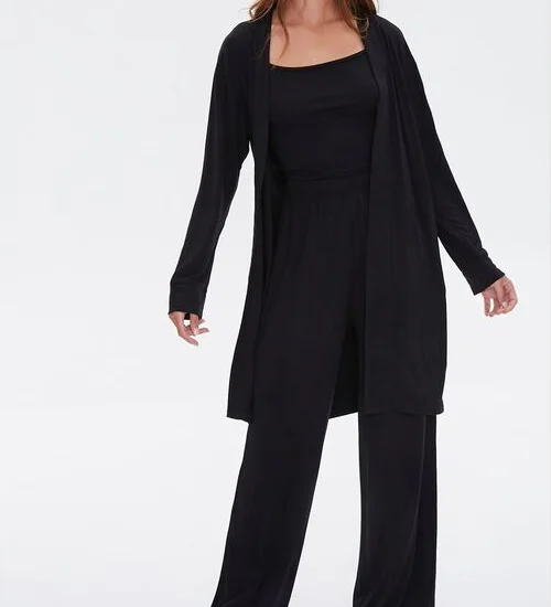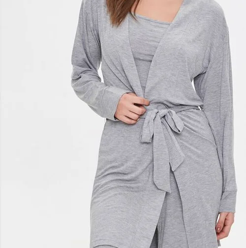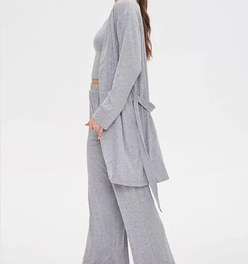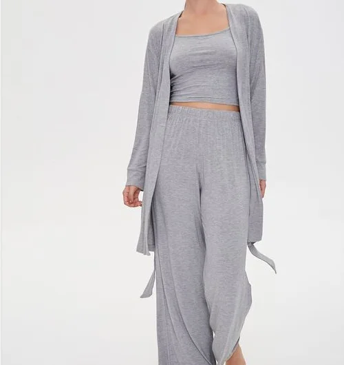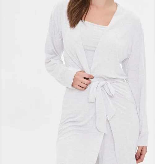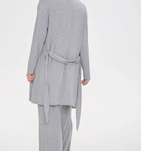 Three-Piece Women’s Rayon Sleepwear with Elastic Waist Plain Dyed for Autumn Plus Size Pajamas